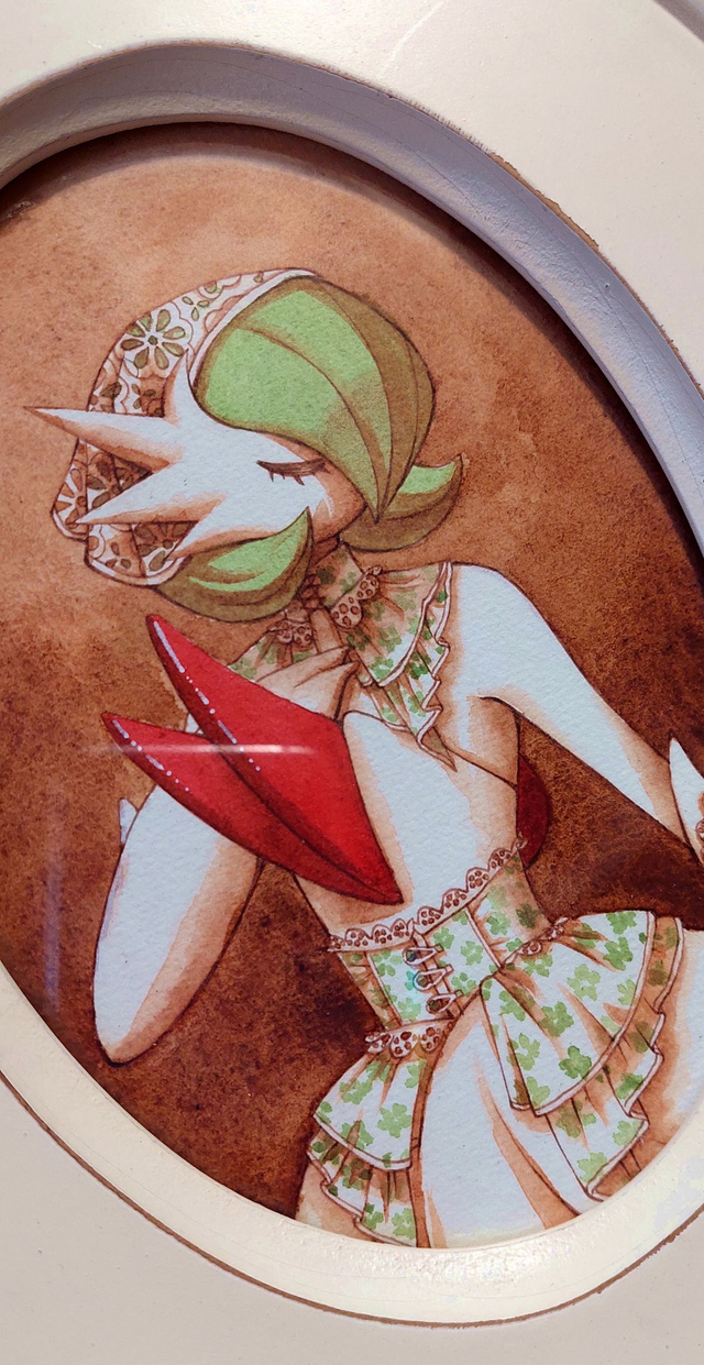Le pokemon Gardevoir dans un style vintage élégant peint à l'aquarelle et encadré au format 21x26cm. Je vend l'original que j'ai peint, il n'en existe donc qu'un seul exemplaire !