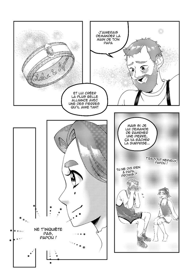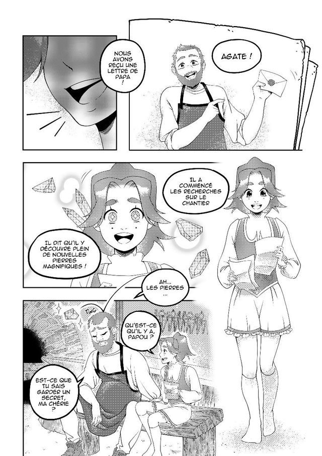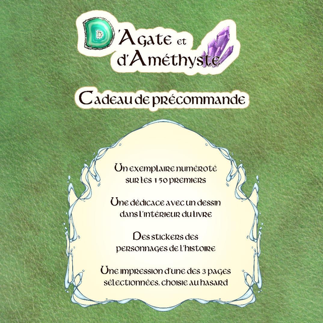 D'Agate et d'Améthyste est un manga jeunesse de 54 pages en noir et blanc. Format A5 (14,8x21cm), sens de lecture japonais