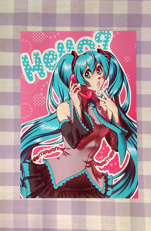 Reproductions d'une illustration au digital de Hatsune Miku au téléphone