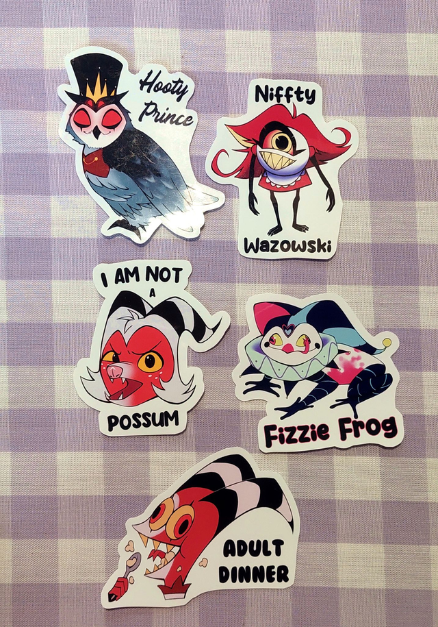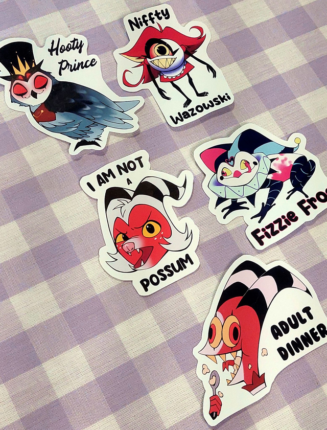 Vous aimez les stickers drôle et le chaos ? Hazbin Hotel et Helluva Boss ? Quoi de mieux que des stickers de vos personnages préférés pour décorer vos affaires ! Vous aurez le choix entre 5 personnages, à savoir :